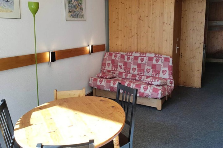 Surrounded by the serene beauty of Arc 1600, this charming studio offers a perfect blend of comfort and convenience for your alpine getaway. Imagine waking up to the soft glow of sunlight streaming through the windows, with views of the lush forest just outside. Whether you're here for skiing adventures or summer hikes, this residence places you right at the foot of the slopes, ensuring effortless access to the lifts and trails that make this region a favorite among outdoor enthusiasts. The vibrant resort center, with its array of shops and restaurants, is just a short stroll away, adding a touch of lively charm to your stay. \n\nInside, the 40m² studio is thoughtfully designed to accommodate up to five guests. The living room features a cozy sofa bed for two, while the entrance hall offers bunk beds and a high bed, perfect for families or small groups. The kitchenette is fully equipped with modern appliances, including a ceramic hob, oven, microwave, dishwasher, and refrigerator, making it easy to prepare hearty meals after a day of exploration. A shower room and separate toilet provide added convenience, while amenities like free Wi-Fi and a television ensure relaxation during your downtime. \n\nStep outside and discover the magic of Arc 1600. From thrilling ski runs in winter to scenic forest trails in summer, the area caters to adventurers of all kinds. Shared parking nearby and a ski locker make logistics hassle-free, while the pet-friendly policy means your furry companions can join in the fun. Whether you're savoring local delicacies at nearby restaurants or simply soaking in the tranquil alpine atmosphere, this studio is your gateway to unforgettable memories in the French Alps.