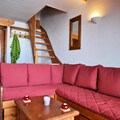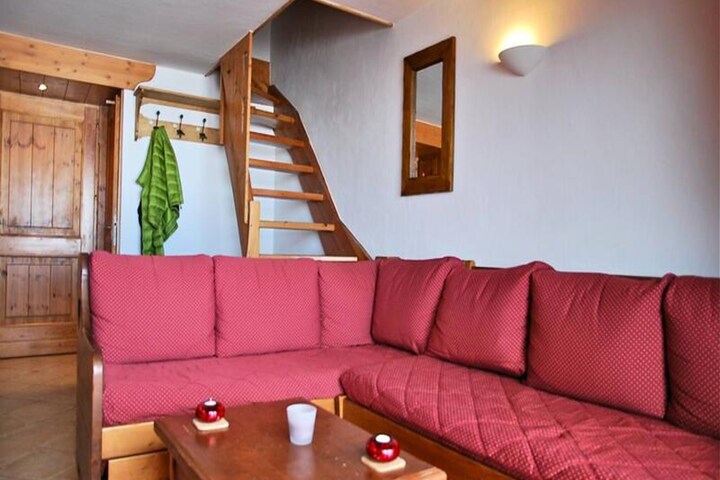 Where the majestic Mont Blanc graces the horizon, this charming duplex apartment in the serene Le Chantel neighborhood of Les Arcs 1800 offers an unforgettable alpine escape. Imagine waking up to the crisp mountain air and stepping directly onto the slopes with ski-in/ski-out access, making every moment of your holiday seamless and exhilarating. Nestled in a tranquil setting, the residence provides breathtaking views and a peaceful retreat just minutes away from the lively resort centers of Charvet and Villards. \n\nThe spacious 4-room apartment comfortably accommodates up to six guests, featuring three cozy bedrooms and a mezzanine. The open-plan living area invites relaxation with its comfortable seating, while the fully equipped kitchen—complete with a dishwasher, oven, and Nespresso coffee maker—makes dining in a delight. Upstairs, the master bedroom boasts a double bed and en-suite shower, while additional bedrooms provide twin beds for restful nights. Modern amenities such as Wi-Fi, a TV with DVD player, and covered parking ensure convenience and comfort throughout your stay.\n\nBeyond the apartment, the residence offers access to a swimming pool and sundeck in the neighboring Iseran building. Free shuttles and the Dahu gondola connect you effortlessly to ski schools, shops, and après-ski venues. In winter, explore the vast Paradiski area with its 425 km of slopes, while summer unveils the wonders of the Vanoise National Park, perfect for hiking and reconnecting with nature. \n\nWhether you seek thrilling ski adventures or serene alpine relaxation, this residence combines the best of both worlds, making it the perfect choice for your mountain getaway.