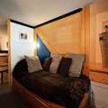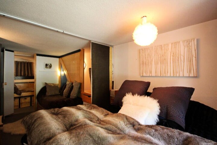 In the serene Charmettoger neighborhood of Les Arcs 1800, this cozy duplex apartment offers a tranquil alpine retreat with convenient access to the slopes and village amenities. Surrounded by the breathtaking beauty of the French Alps, the residence is perfectly situated for a peaceful yet adventurous getaway, with inter-resort shuttles just steps away to connect you to the vibrant Villards or Charmettoger areas. The southeast-facing balcony invites you to start your mornings with stunning views of the surrounding peaks bathed in sunlight. \n\nDesigned to accommodate up to six guests, the 34m² apartment is thoughtfully laid out across two levels. The main floor features a welcoming entrance, a bathroom with a bathtub, and a fully renovated open kitchen equipped with ceramic hobs, a microwave, a coffee maker, a kettle, a refrigerator, and a dishwasher. The living area, complete with a dining table and TV, provides a cozy space to unwind after a day of alpine adventures. Upstairs, the mezzanine offers a charming sleeping arrangement with two single beds, a nook with a trundle bed and daybed, and a private double bed area separated by a swing door. \n\nThe residence boasts practical amenities, including elevators, covered parking in Villards, and outdoor parking in Chante Mouche, with free spaces available in front of the building (paid in winter). The nearby inter-resort shuttle ensures easy access to ski lifts, shops, and restaurants, making it an ideal base for exploring the Paradiski domain. \n\nWhether you’re here to ski the pristine slopes in winter or hike the lush trails in summer, this apartment combines comfort, convenience, and the charm of the French Alps, promising an unforgettable holiday experience.
