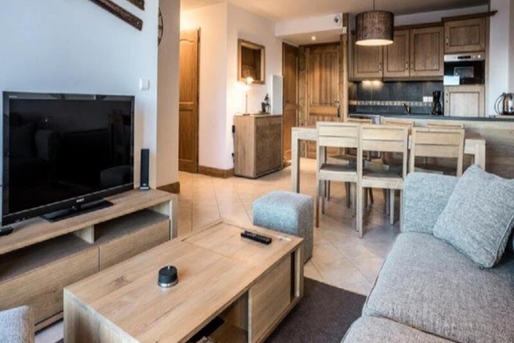 Where the majestic peaks of Mont Blanc meet the serene valley views, this elegant four-room apartment in the L'Iseran residence offers an unparalleled alpine escape. Situated in the tranquil Le Chantel neighborhood of Arc 1800, this property combines luxury with convenience, boasting ski-in/ski-out access and a heated indoor pool. Imagine mornings spent savoring the crisp mountain air on your private balcony, followed by thrilling adventures on the slopes of Paradiski, one of the world's largest ski domains. Whether you're here for winter sports or summer hikes, the breathtaking panorama sets the stage for unforgettable memories. \n\nDesigned for comfort and style, the apartment accommodates up to six guests across three well-appointed bedrooms, including a master suite with an en-suite shower and WC. The spacious living area invites relaxation with its plush sofa, TV, and home cinema system, while the fully equipped kitchen—complete with a dishwasher, oven, and raclette grill—makes dining in a delight. Additional amenities such as Wi-Fi, covered parking, and a ski locker ensure a seamless stay. With towels, linens, and end-of-stay cleaning included, every detail has been thoughtfully arranged for your convenience. \n\nJust minutes away, the ESF ski school, shops, and restaurants are easily accessible via the free resort shuttle or the Dahu cable car, which connects Le Chantel to the bustling resort center in just three minutes. In summer, the nearby National Park Vanoise transforms into a haven for hikers and nature enthusiasts, offering trails that wind through pristine landscapes. For dining, the gourmet grocery store and Le Voga Goga restaurant on the Edenarc forecourt provide delicious local flavors. \n\nWhether you're seeking the thrill of the slopes, the tranquility of alpine nature, or the charm of a mountain village, this residence is your gateway to the best of Les Arcs. Perfect for families, friends, or couples, it promises an alpine retreat that blends adventure, relaxation, and luxury in equal measure.