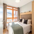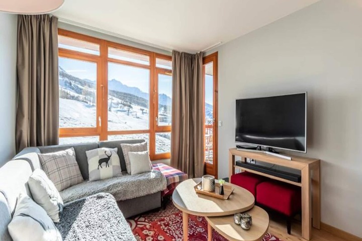 Perched on the heights of Arc 1800, this luxurious 4-star residence, Les Monarques, offers an unparalleled alpine retreat with breathtaking views of the Tarentaise Valley. The southwest-facing apartment combines modern elegance with cozy charm, creating a perfect sanctuary for your mountain getaway. Whether you're seeking thrilling adventures or tranquil relaxation, this premium residence caters to every desire, with ski-in/ski-out access in winter and proximity to the golf course in summer. The serene atmosphere is complemented by exceptional amenities, including a swimming pool, spa, and fitness room, ensuring moments of indulgence and rejuvenation after a day of exploration. \n\nSpanning 78m², this beautifully appointed 3-bedroom apartment accommodates up to six guests in style and comfort. The open-plan living area is bathed in natural light, offering stunning slope views and a cozy lounge for unwinding. The fully equipped kitchen, complete with modern appliances, invites you to prepare delicious meals to share with loved ones. Each bedroom is thoughtfully designed, with one featuring an en-suite bathroom for added privacy. Additional conveniences like Wi-Fi, a Bose Hi-Fi system, and a covered parking space enhance your stay, while the ski locker ensures effortless access to the slopes. \n\nLocated in the prestigious Edenarc au Chantel area, the residence is just steps from Nama Springs Spa, gourmet grocery stores, ski rental shops, and the Voga Goga restaurant. The Dahu cable car connects you to the Arc 1800 snow front and resort center in less than three minutes, while a free shuttle bus provides easy access to the village's vibrant shops and attractions. In summer, explore the legendary Vanoise National Park, enjoy mountain festivals, or take in the stunning alpine scenery on hiking and biking trails. \n\nWhether you're drawn to the thrill of Paradiski's 425 km of slopes or the peaceful beauty of the Tarentaise Valley, Les Monarques promises an unforgettable escape in the heart of the French Alps.