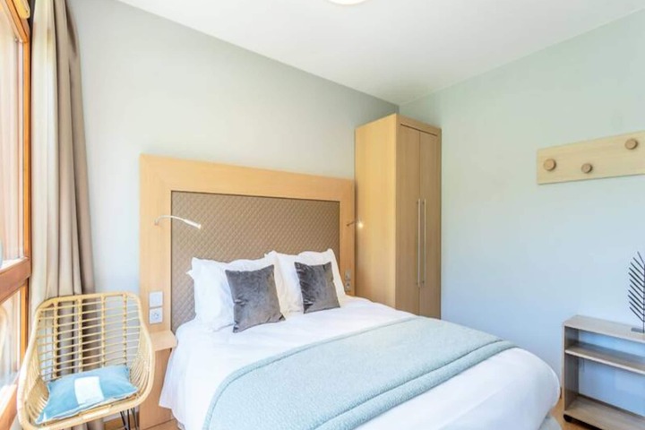 High above the vibrant Arc 1800, this elegant 4-star apartment in the Les Monarques residence offers a luxurious alpine escape with ski-in/ski-out convenience and breathtaking views from its south-facing terrace. Whether you're here to carve through Paradiski’s 425 km of pristine slopes or to enjoy summer hikes in the legendary Vanoise National Park, this property is perfectly situated for year-round adventures. The residence itself boasts premium amenities, including a swimming pool, spa with hammam, sauna, and jacuzzi, as well as a fitness room to ensure relaxation and rejuvenation after an active day in the mountains.\n\nSpanning 85 square meters, the apartment comfortably accommodates up to six guests with three thoughtfully designed bedrooms, including a master suite with en-suite bathroom. The open-plan living area invites you to unwind with plush seating, a Bose Hi-Fi system, and modern entertainment options. The fully equipped kitchen features high-end appliances such as a dishwasher, oven, microwave, and Nespresso coffee maker, making it easy to prepare meals and snacks. Additional conveniences include Wi-Fi, a ski locker, and a covered parking space.\n\nLocated in the exclusive Le Chantel area, the residence is just minutes from Edenarc’s Nama Springs Spa, gourmet grocery store, and the Dahu cable car, which connects you to the Arc 1800 snow front and resort center in under three minutes. A free shuttle service nearby provides easy access to the village’s lively restaurants, shops, and après-ski venues. In summer, the golf course and scenic trails are right at your doorstep.\n\nWhether you’re seeking thrilling winter sports, serene summer landscapes, or indulgent spa days, this apartment offers the perfect blend of comfort, style, and convenience for an unforgettable mountain getaway.