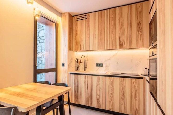 Perched on the heights of Arc 1800 in the serene Le Chantel neighborhood, this luxurious 4-star apartment in the brand-new Les Cristaux residence offers a truly unforgettable alpine escape. With breathtaking panoramic views of Mont Blanc and the Tarentaise Valley from its expansive west-facing terrace, every moment here feels like a postcard come to life. The chic, contemporary decor and thoughtful design create a warm and inviting atmosphere, perfect for unwinding after a day of adventure in the mountains. \n\nThis spacious 64 m² apartment comfortably accommodates up to six guests, featuring two elegant bedrooms, a cozy sleeping alcove, and a bright living area that opens onto the terrace. The fully equipped kitchen, complete with modern appliances, invites you to prepare delicious meals to share with loved ones. Additional amenities include Wi-Fi, a ski locker with boot dryer, and a covered parking space with an electric charging station. Guests also enjoy access to the residence’s spa, offering a hammam, sauna, and jacuzzi for ultimate relaxation.\n\nLocated just minutes from Edenarc, the apartment is ideally situated for exploring the vibrant resort of Les Arcs. The nearby Dahu cable car connects you to the Arc 1800 snow front in under three minutes, while the free inter-resort shuttle ensures easy access to shops, restaurants, and après-ski activities. In winter, the Paradiski domain offers 425 km of slopes for skiing enthusiasts, while summer transforms the area into a haven for hikers and nature lovers with the legendary Vanoise National Park just a stone’s throw away.\n\nWhether you’re seeking thrilling alpine adventures or tranquil moments surrounded by stunning scenery, Les Cristaux promises a mountain retreat filled with charm, comfort, and unforgettable memories.