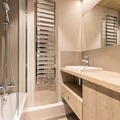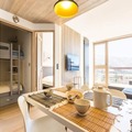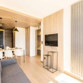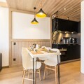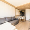 High above the bustling heart of Villards in Les Arcs 1800, this beautifully renovated apartment offers a serene retreat with ski-in/ski-out convenience. Imagine waking up to breathtaking views of the valley and sunset from your southwest-facing balcony, or gazing at the peaceful fir trees from the northeast side. Whether you're here for winter slopes or summer trails, this residence places you at the center of alpine adventure while providing a tranquil haven to unwind after an active day. \n\nDesigned for up to six guests, the apartment boasts a modern layout with a cozy living room featuring a sofa bed and TV, a comfortable bedroom with a double bed, and a sleeping alcove with bunk beds—perfect for families or small groups. The open-plan kitchen is fully equipped with ceramic hobs, oven, refrigerator, dishwasher, washing machine, and coffee makers, ensuring you have everything needed to prepare meals and snacks. A separate bathroom and toilet add to the convenience, while free Wi-Fi keeps you connected throughout your stay. \n\nStep outside and you'll find yourself just moments from the snow front, with easy access to ski lifts and shuttle stops connecting you to other parts of the resort. Villards' shopping mall is within walking distance, offering restaurants, shops, and après-ski entertainment. In summer, the area transforms into a haven for hikers and cyclists, with trails winding through lush landscapes and breathtaking mountain views. \n\nWhether you're seeking thrilling adventures or peaceful relaxation, this apartment combines comfort, convenience, and stunning surroundings to create the perfect alpine escape.