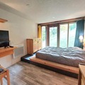 In the serene Charmettoger area of Les Arcs 1800, this cozy duplex apartment offers a tranquil alpine retreat with direct access to the slopes. Imagine waking up to the crisp mountain air and stepping onto your northeast-facing balcony to admire the breathtaking views of Aiguille Grive. Whether you're here for winter skiing or summer hiking, this residence provides the perfect base for exploring the beauty of the French Alps. The peaceful surroundings ensure a relaxing stay, away from the bustle of the busier resort areas. \n\nDesigned to accommodate up to five guests, the apartment combines comfort and practicality. The mezzanine studio layout includes a welcoming living room with a dining table and sofa bed, a fully equipped kitchenette with modern appliances such as a mini oven, microwave, refrigerator, and dishwasher, and a bathroom with a bathtub and toilet. Upstairs, the mezzanine features two single bunk beds and a sofa bed, while a separate bedroom with a double bed and TV offers additional privacy. Eco-friendly linens and end-of-stay cleaning services are available for added convenience, ensuring a sustainable and stress-free holiday experience. \n\nThe residence is ideally situated at the foot of the slopes, making it easy to start your day of skiing or snowboarding without delay. For those seeking local amenities, a grocery store is conveniently located within the residence, while covered parking at Charmettoger and free roadside parking provide practical options for travelers. The inter-resort shuttle stop at Charmettoger connects you effortlessly to other areas of Les Arcs, enhancing your alpine adventure. \n\nWhether you're drawn by the thrill of the slopes, the charm of the mountain trails, or simply the desire to unwind in a peaceful setting, this apartment offers the perfect blend of comfort, location, and accessibility. Make unforgettable memories surrounded by the majestic peaks of the Tarentaise Valley.