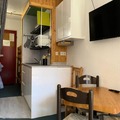 Designed for comfort and convenience, the 19m² studio accommodates up to three guests. The cabin area at the entrance features a snug single bed, while the living room includes a comfortable sofa bed, a small dining table, and a flat-screen TV for cozy evenings. The kitchenette is equipped with electric stovetops, a microwave, and a refrigerator, making it easy to prepare meals after a day of adventure. The northeast-facing balcony offers a tranquil spot to unwind, with views of the surrounding mountains and fir trees. Free Wi-Fi ensures you stay connected during your stay, and eco-friendly linens and cleaning services are available for an additional fee.