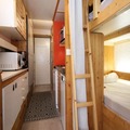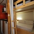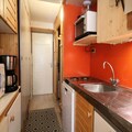 The 25m² studio is thoughtfully designed to accommodate up to four guests. A sleeping alcove features a single bed and a double bunk bed (note: the upper bunk is not suitable for children under six), while the living room includes a comfortable sofa bed and a TV for cozy evenings. The well-equipped kitchen area comes with four electric burners, a mini oven, microwave, dishwasher, refrigerator, kettle, filter coffee maker, and toaster, making it easy to prepare meals after a day of exploring. The bathroom is compact yet functional, and eco-friendly linens and cleaning services are available for added convenience.
