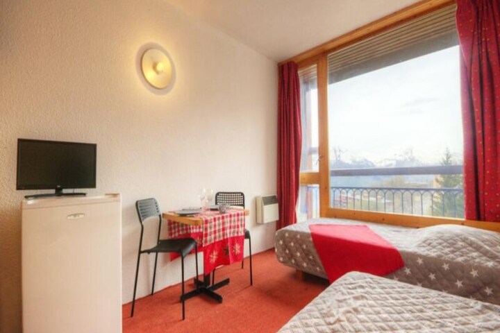 High above the charming Villards village, this cozy studio apartment offers a peaceful retreat with breathtaking views of Mont Blanc. Perched on the 10th floor of the Grand Arbois residence, it combines the serenity of alpine landscapes with the convenience of being at the heart of the resort. Whether you’re gazing at the sunrise over the fir-covered mountains or enjoying the vibrant atmosphere of the village below, this location is a haven for nature lovers and adventure seekers alike.