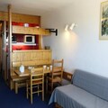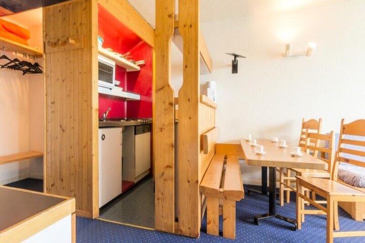 In the heart of the lively Villards village, this charming apartment offers a cozy alpine retreat with ski-in/ski-out convenience. Imagine waking up to the golden hues of a southwest-facing balcony, where the valley stretches out before you, and the promise of thrilling snow adventures awaits just steps from your door. Whether you're here to carve through pristine slopes or bask in the tranquility of the fir-covered landscape, this residence delivers an unforgettable mountain experience. \n\nThe apartment, located on the second floor of the Nova 4 residence, is thoughtfully designed to accommodate up to six guests. Its layout includes a comfortable living room with two sofa beds, a bedroom with twin beds, and a sleeping alcove featuring bunk beds. The open kitchen is equipped with modern amenities such as a mini oven, microwave, refrigerator, and dishwasher, making it easy to prepare hearty meals after a day of alpine exploration. With free Wi-Fi, a TV, and eco-friendly linens available, every detail has been considered to ensure a relaxing stay. \n\nStep outside and you'll find yourself immersed in the vibrant atmosphere of Villards. The nearby shopping mall, inter-resort shuttle stops, and covered parking options make navigating the area effortless. In winter, the snow-covered slopes are your playground, while summer transforms the region into a haven for hiking, biking, and soaking in breathtaking sunsets. \n\nWhether you're seeking adventure or serenity, this apartment is your gateway to the best of the French Alps. Let the majestic landscapes and warm alpine charm create memories you'll treasure forever.