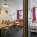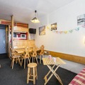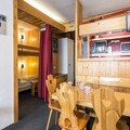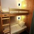 Bathed in the golden hues of the alpine sun, this charming two-room cabin apartment offers a serene retreat in the heart of Les Arcs 1800. Situated on the ground floor of the Nova 5 residence, its southwest-facing balcony invites you to savor breathtaking views of the valley and spectacular sunsets, creating the perfect backdrop for your mountain escape. Whether you're seeking adventure or tranquility, this property provides an ideal base for exploring the Paradiski domain with its ski-in/ski-out access and convenient proximity to the slopes. \n\nDesigned for up to six guests, the apartment combines comfort and practicality. The living room features a sofa bed and trundle bed, while the cabin area offers cozy bunk beds, making it perfect for families or small groups. The bedroom, with two single beds, adds a touch of warmth with its carpeted floor. A fully equipped kitchen awaits your culinary creations, complete with electric burners, a refrigerator, mini-oven, microwave, dishwasher, and even a washer-dryer for added convenience. Modern amenities like free Wi-Fi, a TV, and eco-friendly linens ensure a comfortable stay, while the separate bathroom and toilet provide privacy and ease. \n\nStep outside to discover the vibrant Villards village, where covered parking and inter-resort shuttles make exploring effortless. From grocery stores within walking distance to nearby ski schools and après-ski spots, everything you need is at your fingertips. In summer, the region transforms into a haven for hikers, cyclists, and nature enthusiasts, with trails winding through lush landscapes and opportunities for paragliding over the Tarentaise Valley. \n\nWhether you're drawn to the thrill of the slopes or the serenity of alpine sunsets, this residence promises unforgettable moments in the enchanting embrace of the French Alps.