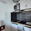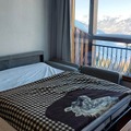 The apartment, located on the fifth floor of a residence with an elevator, is thoughtfully designed to accommodate up to four guests. The living room features a comfortable sofa bed, while the separate bedroom offers bunk beds, perfect for families or small groups. The fully equipped kitchen, complete with an induction hob, combination oven/microwave, and dishwasher, makes it easy to prepare meals after a day of outdoor activities. A west-facing balcony invites you to relax and soak in the mountain views, while modern amenities like a television and ski locker add to your convenience.