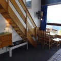 This charming 52m² duplex, located on the 4th floor of Tournavelles 1, comfortably accommodates up to seven guests. The living room, with its cozy pull-out sofa bed, opens to a west-facing balcony offering panoramic views of the resort and valley below. The mezzanine level features three single beds, while a separate bedroom provides three bunk beds, ensuring ample space for families or groups of friends. The fully equipped kitchen, complete with modern appliances, invites you to prepare hearty meals after a day of exploration. A bathroom with a bathtub and a separate toilet add to the convenience, while Wi-Fi and a television in the living room ensure entertainment and connectivity.