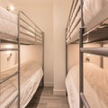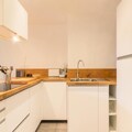 Inside, the apartment spans 75m² and is thoughtfully designed to accommodate up to eight guests. The open-plan kitchen, fully equipped with ceramic hobs, an oven, microwave, dishwasher, and a large refrigerator, flows seamlessly into a bright and inviting living area. Relax on the plush sofas, enjoy meals at the family dining table, or unwind with your favorite shows on the flat-screen TV. The sleeping arrangements include two bedrooms with queen-size beds and a cozy children's room with bunk beds and a TV, ensuring everyone has their own comfortable space. Two modern bathrooms—one with a shower and the other with a bathtub—along with separate toilets, add to the convenience.