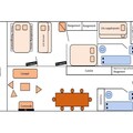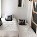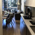 Spanning 54 square meters, this spacious and modern apartment comfortably accommodates up to eight guests. The open-plan living area is bright and inviting, featuring plush sofas, a family dining table, and a flat-screen TV, perfect for relaxing evenings after a day of exploration. The fully equipped kitchen boasts high-end appliances, including a combination oven/microwave, dishwasher, and Nespresso coffee maker, ensuring you have everything needed to prepare delicious meals. The sleeping arrangements include a cozy cabin bedroom with a double bed, a second bedroom with another double bed and its own TV, and a cabin area with bunk beds and a trundle bed in the living room. Two sleek bathrooms and a washer-dryer add to the convenience and comfort of your stay.