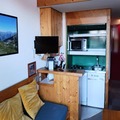 High above the Tarentaise Valley, where the crisp alpine air invigorates the senses, the Archeboc Residence offers a cozy retreat in the heart of Les Arcs 1800. This charming studio apartment, perched on the 5th floor, invites you to immerse yourself in the beauty of the French Alps, with the blue Charmettoger ski run just two minutes away and the Transarc ski lift a short three-minute walk from your door. Whether you're here for the thrill of skiing or the serenity of summer hikes, this location places you at the center of it all.