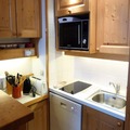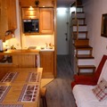 Spanning 35m², this thoughtfully designed apartment comfortably accommodates up to five guests. The living room features a sofa bed for two, while the mezzanine offers a double bed and a sleeping alcove with a trundle bed, making it ideal for families or small groups. The open-plan kitchen is fully equipped with modern appliances, including a combination microwave oven, refrigerator, toaster, kettle, coffee maker, and dishwasher, ensuring you have everything needed to prepare delicious meals. After a day of skiing or hiking, unwind in the cozy living area with a television and Wi-Fi access, or take in the stunning mountain views from your northeast-facing balcony.