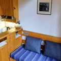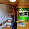 The 33m² apartment comfortably accommodates up to five guests, making it ideal for families or small groups. The living room features a single sofa bed, while the mezzanine floor offers a double bed and a sleeping alcove with bunk beds, perfect for children over six. The open-plan kitchen is fully equipped with modern appliances, including an electric stovetop, oven, microwave, dishwasher, and more, ensuring you have everything needed to prepare hearty meals after a day on the slopes. A cozy living area with a television and Wi-Fi access provides the perfect spot to unwind.