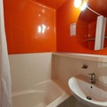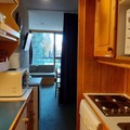 The studio, located on the third floor with elevator access, is thoughtfully designed to accommodate up to four guests. The living room features two comfortable single beds, while a sleeping alcove with a double sofa bed provides additional space. A fully equipped kitchen, complete with an electric stovetop, oven, microwave, refrigerator, and dishwasher, ensures you can prepare delicious meals after a day of exploration. The bathroom includes a bathtub and toilet, offering a relaxing space to unwind. Modern amenities like a television and cozy heating make your stay even more comfortable.