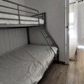 Inside, the 39m² apartment is thoughtfully designed to accommodate up to six guests. The upper floor features three distinct sleeping areas, including a cozy bedroom with a double bed, a bunk bed with a double and single mattress, and an alcove with additional bunk beds. The open-plan kitchen is fully equipped with modern appliances such as an induction hob, oven, dishwasher, and coffee maker, making it easy to prepare meals after a day of adventure. Relax in the inviting living room, complete with a television, or step out onto the east-facing balcony to soak in the morning sun and breathtaking views. Additional amenities include a washing machine, ski locker, and elevator access for added convenience.
