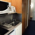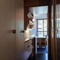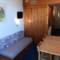 The 25m² studio is thoughtfully designed to accommodate up to four guests, making it ideal for couples, small families, or close friends. The living room features two comfortable single beds, while a separate sleeping area includes bunk beds, perfect for younger adventurers. The fully equipped kitchen, complete with an electric stovetop, combination oven/microwave, dishwasher, and refrigerator, allows you to prepare meals with ease. After a day of exploring, relax in the cozy living area with a television or unwind with a warm bath in the well-appointed bathroom.