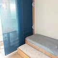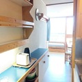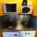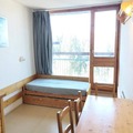 Designed to accommodate up to four guests, the studio features a cleverly arranged living area with a single bed and trundle bed, as well as a sleeping alcove with similar arrangements. The fully equipped kitchen includes an electric stovetop, oven, microwave, dishwasher, and refrigerator, making it easy to prepare hearty meals after a day of activity. The bathroom offers a bathtub and toilet, while the living room is equipped with a television for your relaxation. With its warm and functional design, this apartment ensures a comfortable stay for families or small groups.
