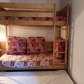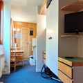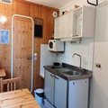 This 17m² studio is thoughtfully designed to accommodate up to three guests, making it ideal for couples or small families. The living area features a set of bunk beds and a trundle bed, ensuring a comfortable night's rest after a day of exploration. A fully equipped open kitchen invites you to prepare hearty meals, complete with ceramic hobs, a refrigerator, and essential appliances like a coffee maker and microwave. The bathroom, fitted with a bathtub, offers a relaxing space to unwind. Modern conveniences such as a flat-screen TV and Wi-Fi ensure a seamless stay.