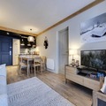 Amidst the serene beauty of the French Alps, the Source de Marie residence in Arc 1950 offers an unparalleled alpine retreat. This premium 5-star residence is nestled within the pedestrian village, providing direct ski-in/ski-out access to the expansive Paradiski area, renowned for its 425 km of pristine slopes. Imagine waking up to breathtaking views of snow-covered peaks, stepping out onto the slopes, and immersing yourself in the magic of the mountains. Whether you're seeking thrilling ski adventures or tranquil moments surrounded by nature, this destination promises unforgettable experiences. \n\nThe apartment spans 55m² and is thoughtfully designed to accommodate up to 4 adults and 2 children. It features a cozy living room with a sofa bed, a fully equipped open-plan kitchen, and a dining area perfect for shared meals. The double bedroom boasts an en-suite bathroom and toilet, while the twin bedroom offers its own bathroom and toilet, ensuring comfort and privacy for all guests. Every detail has been curated to enhance your stay, from plush linens and welcome products to beds made upon arrival and end-of-stay cleaning services. \n\nThe wellness area is a true highlight, inviting you to unwind after a day on the slopes. Indulge in the indoor jacuzzi, sauna, and fitness room within the residence, or enjoy access to the outdoor swimming pool, jacuzzi, and hammam at the nearby Auberge de Jérôme. These amenities provide the perfect balance of relaxation and rejuvenation, allowing you to fully embrace the alpine lifestyle. \n\nArc 1950’s pedestrian village is brimming with charm, offering a variety of shops, restaurants, and après-ski activities just steps from your door. Whether you’re exploring the vibrant village or venturing into the Paradiski domain, the Source de Marie residence offers an exceptional base for your alpine escape. Create lasting memories in this idyllic mountain haven, where luxury and adventure seamlessly intertwine.