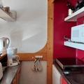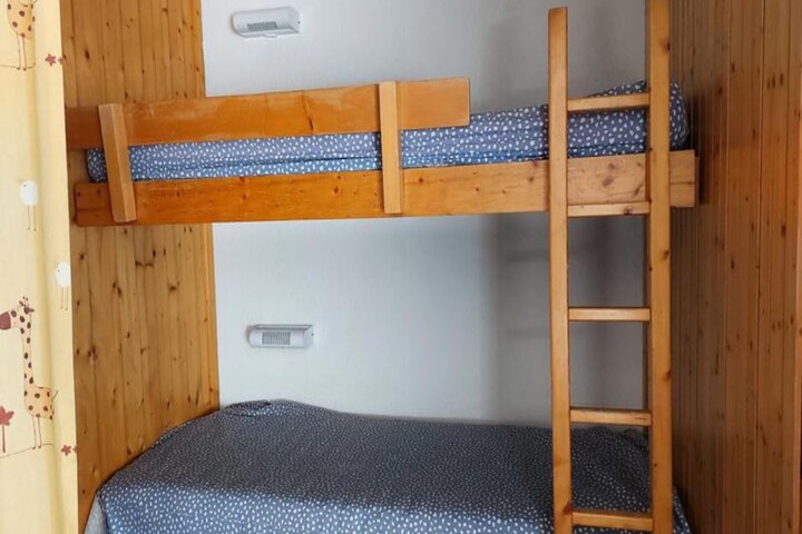 Inside, the 39m² apartment comfortably accommodates up to six guests. The living room features two single sofa beds, while the bedroom offers two single beds for a restful night’s sleep. A cozy sleeping alcove with bunk beds adds a playful touch, perfect for families. The fully equipped kitchen, complete with an oven, dishwasher, and coffee maker, invites you to prepare hearty meals to enjoy after a day on the slopes. Modern amenities such as Wi-Fi and a flat-screen TV ensure relaxation and entertainment, while the south-facing balcony provides a serene spot to unwind with panoramic mountain views.