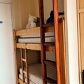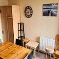 Designed to comfortably accommodate up to four guests, the apartment features a semi-enclosed bedroom with a double bed and a sleeping alcove with two bunk beds, making it ideal for families or small groups. The living room invites you to unwind with a flat-screen TV, while the kitchenette is equipped with everything you need to prepare meals, including an electric stovetop, microwave, refrigerator, and a Dolce Gusto coffee maker. A separate bathroom and toilet add to the convenience, and a ski locker ensures your gear is always ready for the next adventure.