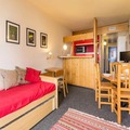 High above the charming Arc 2000, this cozy studio apartment offers breathtaking views of Mont Blanc and the surrounding valley. Imagine sipping your morning coffee on the north-facing balcony as the sun rises over the majestic peaks, setting the perfect tone for a day of alpine adventure. Whether you're here to carve through pristine slopes or simply soak in the serene mountain atmosphere, this residence places you at the heart of it all. \n\nDesigned for up to five guests, the 29m² studio maximizes comfort and functionality. The entrance hall features two bunk beds and a trundle bed, while the living area offers a sofa bed and an additional trundle bed. A flat-screen TV and a fully equipped kitchen, including a mini-oven, refrigerator, dishwasher, and coffee maker, ensure a relaxing and convenient stay. The bathroom is thoughtfully designed, and eco-friendly linens and cleaning services are available for an added touch of sustainability. \n\nStep outside, and you're just moments away from the slopes, with ski-in access possible depending on snow conditions. The residence is also conveniently located near the inter-resort shuttle stop, making it easy to explore the wider Paradiski area. In winter, the covered Mont Blanc parking and outdoor P3 parking at the foot of the residence make arrival seamless. \n\nWhether you're a family, a group of friends, or a couple seeking a romantic getaway, this studio offers an unbeatable combination of comfort, convenience, and stunning natural beauty. Let the magic of Mont Blanc and the vibrant energy of Arc 2000 create memories you'll cherish forever.