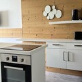 The apartment spans 54 m² and accommodates up to seven guests, making it ideal for families or small groups. The living room features a cozy 140cm double bed and a flat-screen TV with USB connectivity, while the two cabins offer versatile sleeping arrangements, including bunk beds and another 140cm double bed. The fully equipped kitchen invites you to prepare hearty meals after a day on the slopes, with modern appliances such as a conventional oven, microwave, dishwasher, and even a raclette grill for authentic alpine dining. Two bathrooms, including a shower room with a WC, ensure convenience for all guests. Additional amenities like free Wi-Fi, a ski locker, and eco-friendly linens enhance your stay.