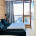 Designed to accommodate up to seven guests, the 56 m² apartment features a harmonious blend of comfort and practicality. The master bedroom offers a plush 160cm double bed and a flat-screen TV, while the cozy cabin rooms provide additional sleeping arrangements, including bunk beds perfect for children. The fully equipped kitchen, complete with a Nespresso machine, induction hobs, and a dishwasher, makes meal preparation a breeze. Two modern bathrooms, hardwood parquet flooring, and thoughtful amenities like free Wi-Fi and a ski locker ensure a seamless stay.