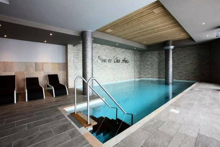 High above the Tarentaise Valley, where the peaks of the French Alps touch the sky, Residence La Source des Arcs***** offers a luxurious alpine retreat in the heart of Les Arcs 2000. Here, every morning begins with the soft glow of sunlight streaming through your southeast or southwest-facing balcony, while the crisp mountain air invites you to explore the breathtaking surroundings. Whether you're seeking adventure on the slopes or tranquility in the spa, this residence promises an unforgettable escape. \n\nDesigned with comfort and elegance in mind, the apartments accommodate groups of all sizes, from cozy two-person retreats to spacious accommodations for up to ten guests. Each apartment features a modern living room, a fully equipped kitchen, and thoughtfully arranged bedrooms, including double beds and twin options. Relax after a day of adventure in the heated indoor pool, unwind in the sauna or steam room, or stay active in the fitness center. For added convenience, pastries can be delivered to your apartment each morning, ensuring a delightful start to your day.\n\nLes Arcs 2000 is a gateway to endless alpine adventures. Ski enthusiasts will revel in the proximity to world-class slopes, while summer visitors can explore hiking trails, mountain biking routes, and panoramic vistas. The residence is also near charming villages, local markets, and cultural landmarks, making it an ideal base for discovering the region's rich heritage.\n\nWhether you're here to carve through fresh powder, bask in the beauty of the Alps, or simply relax in a serene mountain setting, Residence La Source des Arcs***** offers the perfect blend of luxury, comfort, and natural splendor. Let the majestic peaks and warm hospitality create memories that will last a lifetime.