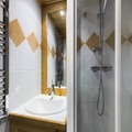 Spanning 55 square meters, this thoughtfully designed apartment comfortably accommodates up to six guests. The living room features two pull-out beds and a flat-screen TV, creating a cozy space to unwind after a day of adventure. The fully equipped kitchen includes a ceramic hob, dishwasher, combination microwave oven, washing machine, and a Nespresso machine, ensuring all the comforts of home. The master bedroom boasts a double bed with an en-suite shower room and toilet, while the second bedroom offers two single beds. Additional amenities include a separate bathroom, a second toilet, and a ski locker for your convenience.