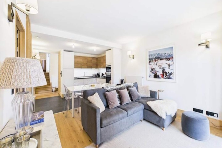 Step into your spacious 90m² duplex apartment, thoughtfully designed to accommodate up to eight guests, including a maximum of six adults. The property features three elegant bedrooms with plush 160x200cm beds and en-suite bathrooms, a cozy sleeping alcove with a sofa bed and TV, and two terraces offering stunning views of the fir trees and surrounding peaks. The south-facing terrace is perfect for soaking up the sun, while the northwest-facing terrace invites you to unwind as the sun sets over the mountains. The fully equipped kitchen, complete with high-end appliances like a Nespresso machine and induction hob, makes meal preparation a delight. Additional amenities include a washing machine, dryer, ski locker, and private parking for two vehicles.