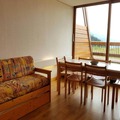 Inside, the 35m² studio is thoughtfully designed to accommodate up to five guests, making it perfect for families or small groups. The living area features a pull-out sofa bed, while a sleeping alcove offers a bunk bed and a single bed. The fully equipped kitchen, complete with a ceramic hob, oven, microwave, dishwasher, and refrigerator, ensures you can prepare delicious meals after a day of adventure. A bathroom with a bathtub and a separate toilet adds to the convenience, while modern amenities like a television, DVD player, and washing machine enhance your stay.