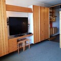 High above the Tarentaise Valley, this charming studio in Arc 1600 offers a serene retreat with breathtaking views of the surrounding mountains. Whether you're planning a winter ski adventure or a summer escape to the Alps, this residence provides the perfect balance of tranquility and convenience. Imagine sipping your morning coffee on the southwest-facing balcony, soaking in the golden hues of the valley below, and stepping out to the slopes just 50 meters away for a day of alpine exploration. The quiet location ensures restful evenings, while the resort center and shops are just a 5-minute walk away, making it easy to enjoy local dining and entertainment. \n\nDesigned to comfortably accommodate up to four guests, the 28m² studio is thoughtfully arranged with a cozy living room featuring a sofa bed and two bunk beds. The kitchen is fully equipped with modern appliances, including an electric stovetop, oven, microwave, dishwasher, and refrigerator, allowing you to prepare hearty meals after a day of adventure. The bathroom, complete with a bathtub, and separate toilet add to the convenience, while amenities like Wi-Fi, television, and a washing machine ensure a comfortable stay. A dedicated ski locker is also available, making it easy to store your gear after a day on the slopes. \n\nArc 1600 is a gateway to the renowned Paradiski ski area, offering endless opportunities for skiing, snowboarding, and hiking. In summer, the region transforms into a haven for outdoor enthusiasts, with trails leading to stunning vistas and alpine meadows. The nearby resort center buzzes with activity, from cozy cafes to lively après-ski spots, ensuring you have everything you need within reach. Whether you're here to carve through fresh powder or bask in the beauty of the mountains, this studio is your ideal base for an unforgettable alpine getaway.