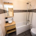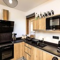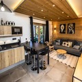 This spacious 4-room apartment, spanning 75m², is designed to accommodate up to eight guests with ease. The open-plan living area features plush sofas, a flat-screen TV, and direct access to the terrace, creating a cozy space to unwind after a day of alpine adventures. The fully equipped kitchen boasts modern appliances, including a ceramic hob, oven, microwave, dishwasher, and a large fridge-freezer, making it easy to prepare hearty meals. The sleeping arrangements include three well-appointed bedrooms: two with large double beds, one of which has an en-suite shower room and terrace access, and a third with bunk beds, perfect for families. Additional amenities include a bathroom with a bathtub, a separate toilet, and a washing machine with a dryer for added convenience.