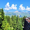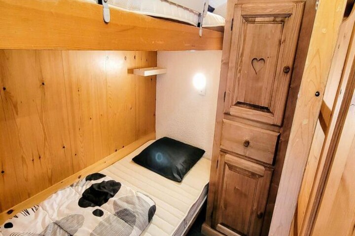 Where the snow sparkles under the alpine sun, this charming studio cabin offers a cozy retreat with breathtaking views of Mont Blanc. Situated between the picturesque villages of Le Charvet and Les Villards, the residence boasts a prime ski-in/ski-out location, ensuring effortless access to the slopes. Whether you're here for winter adventures or summer serenity, the setting invites you to immerse yourself in the natural beauty of the French Alps. From your balcony, enjoy the tranquil sights of fir trees and the snow front, or gaze out over the valley to the majestic Mont Blanc. \n\nDesigned for up to four guests, this studio cabin is thoughtfully arranged to maximize comfort and convenience. The cabin features two bunk beds, a living room with a sofa bed and pull-out bed that can transform into a double bed and single bed, and a well-equipped kitchenette with modern appliances including a combination oven, refrigerator-freezer, dishwasher, and coffee makers. The bathroom is clean and functional, and the residence provides free Wi-Fi to keep you connected. Cotton or eco-friendly sheets are available, and end-of-stay cleaning can be arranged for an additional fee. \n\nThe location is ideal for exploring the region, with an inter-resort shuttle stop nearby at Charvet. Covered parking is available for guests, and elevators ensure easy access to the residence. In winter, the snow front is just steps away, while summer brings opportunities for hiking, biking, and enjoying the vibrant alpine villages. Whether you're seeking adventure or relaxation, this studio cabin offers a welcoming base for your mountain escape.