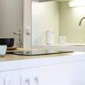 Renovated in 2013, the 27 m² studio is thoughtfully designed to accommodate up to four guests. The mountain corner features two 80cm bunk beds, while the living room offers a sofa bed and a trundle bed that converts into a comfortable double bed. The kitchen is fully equipped with modern appliances, including induction hobs, a microwave, a refrigerator/freezer, a dishwasher, a toaster, a kettle, and a coffee maker, making it easy to prepare meals after a day of exploring. The southwest-facing balcony provides a peaceful spot to unwind, with views of the forest and the slopes.