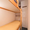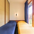 The 40m² duplex is thoughtfully designed to accommodate up to six guests. The main floor features a welcoming living area with a sofa bed, a dining table, and a TV, creating a cozy space to relax after a day of adventure. The adjoining kitchen is equipped with modern amenities, including a refrigerator, mini oven, dishwasher, and coffee maker, making it easy to prepare hearty meals. Upstairs, you'll find a hallway with bunk beds (note: the top bunk is not suitable for children under six), a bathroom with a bathtub and toilet, and a sleeping area with a trundle bed and three single beds, separated by a sliding partition for added privacy.