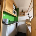 Designed to comfortably accommodate 4-5 guests, this 35m² duplex combines practicality with cozy charm. The main level features a welcoming living area with a 140cm sofa bed, a TV, and a fully equipped kitchen complete with electric burners, a mini oven, microwave, refrigerator, dishwasher, and all the essentials for preparing hearty meals. Upstairs, the mezzanine offers a peaceful sleeping area with a double bed, two bunk beds, and a bathroom with a bathtub and toilet. The layout ensures both privacy and comfort, making it ideal for families or small groups.