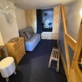 Spanning 30m², this thoughtfully designed studio accommodates up to five guests. The mezzanine features two semi-enclosed sleeping areas with single beds, offering privacy and comfort. The living room, complete with a sofa bed and a television, creates a welcoming space to relax. The fully equipped kitchenette includes three electric hobs, an oven, a microwave, a refrigerator, and a dishwasher, making it easy to prepare hearty meals to enjoy with loved ones. The bathroom, fitted with a bathtub, adds a touch of indulgence to your stay.