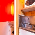 The apartment is thoughtfully designed to maximize comfort and functionality, featuring two comfortable 80cm sofa beds, a TV, and a compact kitchenette equipped with essential appliances such as a microwave, refrigerator, toaster, and electric coffee maker. The small boat-style shower stall and separate toilet ensure privacy and convenience, while eco-friendly linens and end-of-stay cleaning services are available for an added touch of sustainability. Free Wi-Fi throughout the residence keeps you connected during your stay.