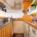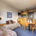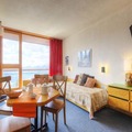 High above the serene valley, this charming 2-room apartment in the Arandelières residence offers a tranquil retreat in the heart of the Villards area in Les Arcs. Situated on the 5th floor, the southwest-facing balcony treats you to breathtaking views of the surrounding mountains and lush landscapes, creating the perfect backdrop for your alpine getaway. Whether you're here for the snow-covered slopes or the vibrant summer trails, this location promises a memorable stay year-round. \n\nDesigned to comfortably accommodate up to five guests, the apartment features a cozy living room with two single beds, a flat-screen TV, and a small dining area. The SNCF-style bedroom includes three single beds, two of which are bunk beds, making it ideal for families or small groups. The fully equipped kitchenette, complete with electric burners, a microwave, refrigerator, and dishwasher, ensures you have everything you need to prepare meals after a day of adventure. The bathroom includes a bathtub, and a separate toilet adds convenience to your stay. \n\nNestled just below the shopping mall in the lower square of the Village des Villards, the residence offers easy access to local amenities. From covered and outdoor parking options to nearby shuttle stops, everything you need is within reach. The vibrant shops, restaurants, and après-ski spots are just steps away, making it easy to immerse yourself in the lively village atmosphere. \n\nWhether you're skiing down the pristine slopes of Les Arcs in winter or exploring the breathtaking hiking and biking trails in summer, this apartment is your gateway to the best of the French Alps. Relax on the balcony with a glass of wine, soak in the stunning views, and create unforgettable memories in this idyllic alpine retreat.