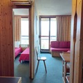 This 40m² apartment, perched on the 6th floor of Nova 3, is designed to comfortably host up to six guests. The southwest-facing balcony provides breathtaking views of the surrounding mountains and valley, creating the perfect backdrop for your mornings or evenings. Inside, the living room features two single beds, complemented by a separate bedroom with two more single beds and a cozy sleeping alcove with bunk beds. The fully equipped kitchen, complete with an oven, microwave, dishwasher, and more, makes it easy to prepare meals after a day of exploration. A bathroom with a bathtub and a separate toilet add to the convenience, while Wi-Fi and a television ensure modern comforts.
