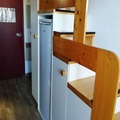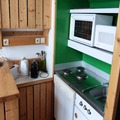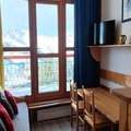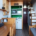 Inside, the 30m² studio is thoughtfully designed to accommodate up to five guests. The mezzanine layout adds a sense of space and charm, featuring a comfortable double bed and a sleeping alcove with an additional double bed. The living room, with its cozy single bed and television, is perfect for unwinding after a day on the slopes. The fully equipped kitchen, complete with an electric stovetop, microwave, oven, and dishwasher, ensures you can prepare hearty meals to enjoy with loved ones. Modern conveniences like Wi-Fi and a bathtub for a relaxing soak add to the comfort of your stay.