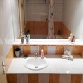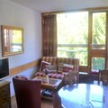 This thoughtfully designed 25m² studio, situated on the 6th floor with elevator access, comfortably accommodates up to four guests. The living room features a double sofa bed, while a sleeping alcove offers bunk beds, making it perfect for families or small groups. The northeast-facing balcony provides stunning views of the surrounding forest and mountains, a perfect spot to start your day with a cup of coffee. The fully renovated kitchen is equipped with modern amenities, including induction hobs, a combination oven/microwave, a dishwasher, and a refrigerator, ensuring you have everything you need for a comfortable stay. A cozy bathroom with a bathtub and toilet completes the space, while additional amenities like Wi-Fi and a television add to your convenience.