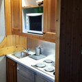 The 29m² studio is thoughtfully designed to accommodate up to five guests, making it perfect for families or small groups. The living area features two comfortable single beds, while a separate sleeping nook offers bunk beds and a pull-out bed, ensuring restful nights for everyone. The fully equipped kitchen, complete with an electric stovetop, oven, microwave, dishwasher, and refrigerator, allows you to prepare hearty meals after a day of adventure. Relax in the cozy living room with a television or unwind in the bathroom with a bathtub to soothe tired muscles.