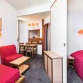 The residence offers a comfortable and convenient base for your alpine getaway. This 28 m² apartment is situated on the 10th floor of the residence, with easy access via an elevator. The accommodation includes a living room with a sofa bed, trundle bed, and a convertible armchair, as well as a dining table for four. The bedroom features a double bed, while the apartment also has a bathroom with a separate toilet and a balcony with stunning views.